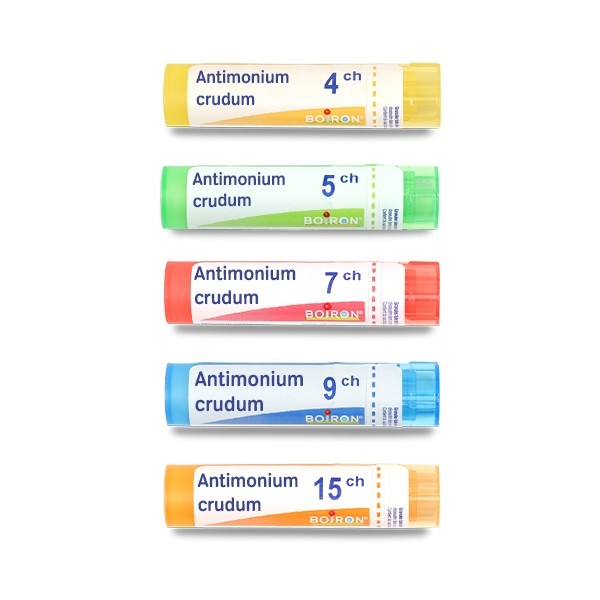 Antimonium crudum en dose existe aussi mais ne possède pas pour autant les mêmes indications. Veillez à prendre rendez-vous avec un médecin au préalable.