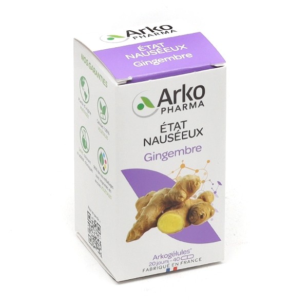 De nombreuses études se sont intéressées aux bienfaits du gingembre. Elles ont notamment permis de mettre en évidence l’intérêt du gingembre dans les troubles de la digestion. Le gingembre permettrait en effet de favoriser une bonne digestion. La Commission Européenne a d’ailleurs reconnu l’usage du gingembre dans le traitement des troubles digestifs. Les propriétés anti-nauséeuses du gingembre, notamment dans le mal des transports ont également fait l’objet d’études et son usage a été reconnu par l’OMS comme « cliniquement justifié » dans « la prévention des nausées et des vomissements dus au mal des transports et au mal de mer, ainsi que ceux liés à une intervention chirurgicale ou à la grossesse ». Si vous avez des troubles digestifs ou que vous n’avez pas le pied marin, la consommation de gingembre pourrait s’avérer fort utile. Arkopharma propose du gingembre sous forme de gélules que vous pouvez conserver à portée de mains et utiliser dès que le besoin s'en fait sentir. Deux gélules de gingembre Arkogélules contiennent 1 500 mg de rhizome de gingembre.