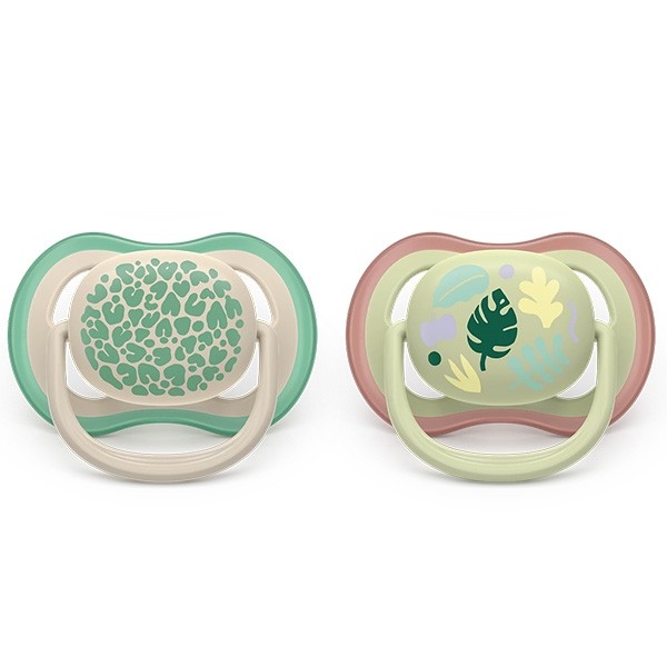 En complément ou en alternative, vous pouvez aussi prendre les sucettes Avent Ultra Air Jour et nuit 6-18 mois qui propose un lot comprenant une sucette pour le jour et une sucette phosphorescente pour la nuit.