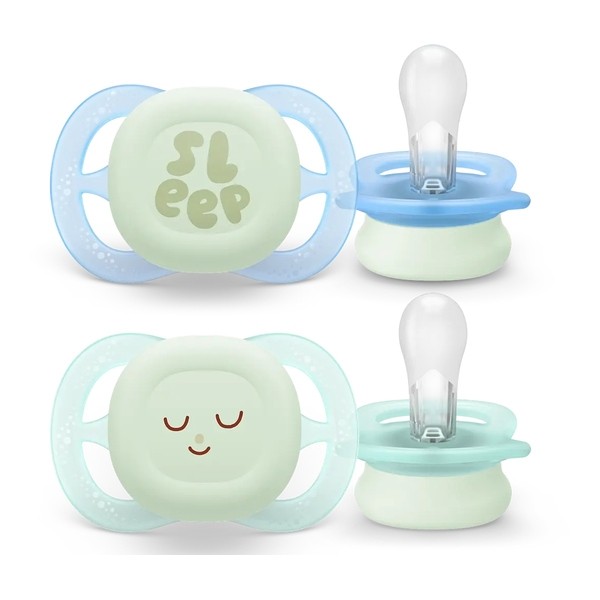 • Avent Ultra Air sucette symétrique Nuit 0-2 mois - Couleur : Vert + Bleu
