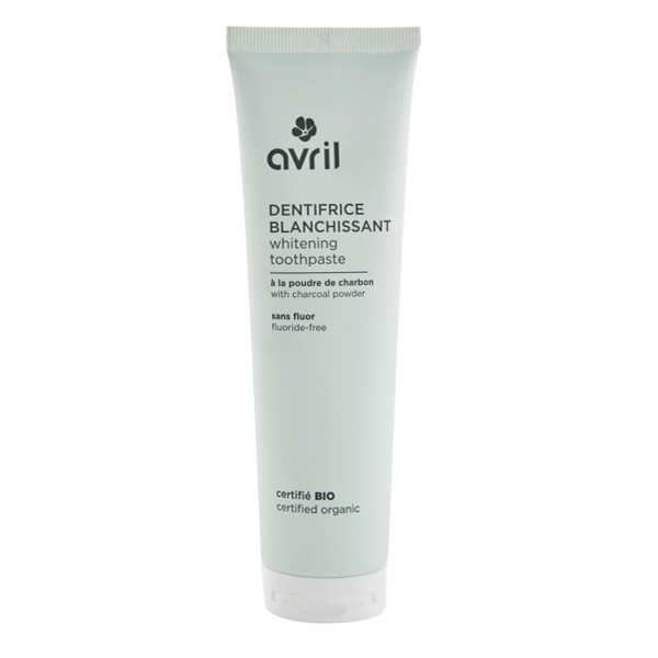 Avril dentifrice blanchissant bio est un dentifrice pour blanchir les dents, formulé avec de la poudre de charbon. Il est sans fluor.