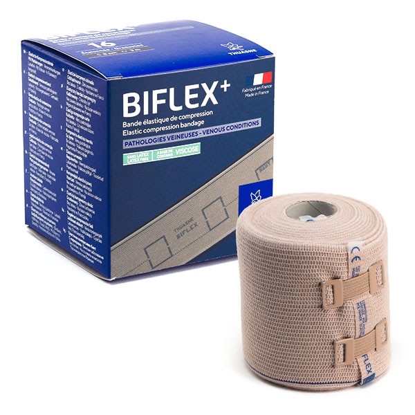 La bande Biflex 16 + de Thuasne est indiquée en prévention et traitement des troubles veineux et de lymphoedème des membres inférieurs et supérieurs. Elle est adaptée à un usage après une chirurgie des varices ou une sclérothérapie. Elle convient également en cas d’œdème veineux. Elle s'utilise lors des eczémas veineux, de pigmentation, d'atrophie blanche, d'hypodermite veineuse et d'ulcère veineux cicatrisé.
