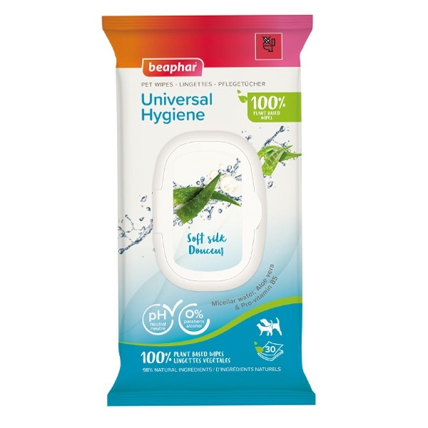 Beaphar lingettes nettoyantes Universelles pour chien et chat permettent de nettoyer le pelage de votre animal et de le rafraîchir. Elles conviennent pour les pattes, l'arrière-train et le corps. Elles ont été testées dermatologiquement. Ces lingettes sont conditionnées dans un sachet refermable.