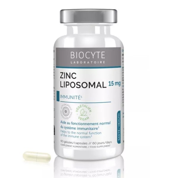 La particularité du zinc que propose Biocyte, c’est qu’il est liposomal, ce qui signifie qu’il est encapsulé dans des liposomes, des capsules de très petite taille (quelques nanomètres) composées de couches de lipides. Ce procédé est destiné à offrir une protection à l'élément au cœur de la capsule et à en améliorer la biodisponibilité dans l'organisme.