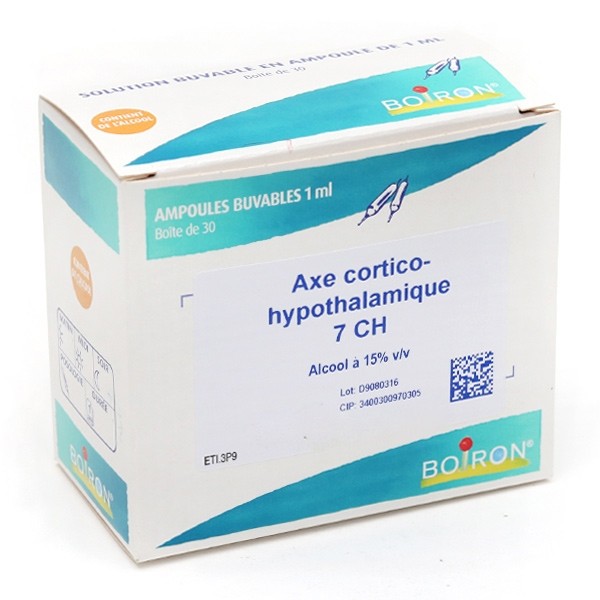 Axe Cortico-Hypothalamique 7CH est un médicament homéopathique se présentant sous forme d'ampoules buvables.