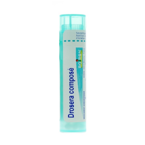 Les tubes granules et doses homéopathiques Drosera contiennent une souche unique : la Drosera, souvent proposée dans différentes dilutions (5CH, 7CH, 9CH, 15CH...). Le tube Drosera composé contient 10 souches (Drosera, Coccus cati, Ipeca...). Le choix entre ces deux médicaments homéopathiques devra se faire conformément aux recommandations de votre médecin ou de votre pharmacien.