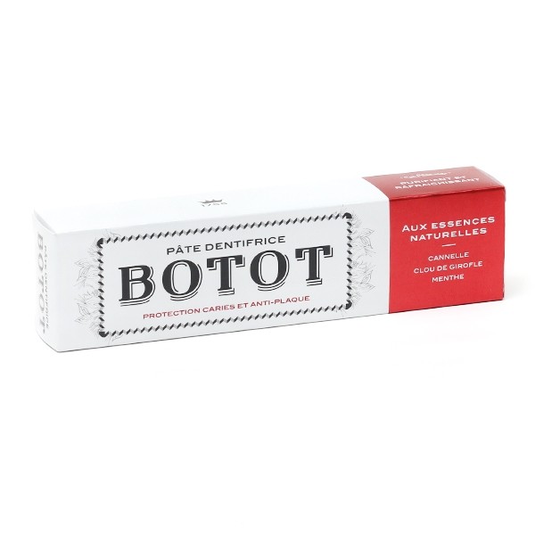 Le dentifrice Botot aux essences naturelles de Cannelle de Ceylan, Clou de girofle et de Menthe vous offre une protection optimale contre les caries ainsi que la plaque dentaire en nettoyant vos dents efficacement.