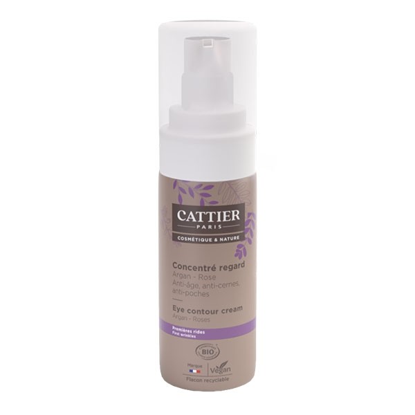 Le concentré regard Bio de la marque Cattier est un soin contour des yeux qui traite les cernes, les poches et offre également une action anti-âge.
