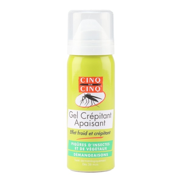 Le gel crépitant apaisant piqûres de la marque Cinq sur Cinq est formulé pour calmer rapidement les démangeaisons et les irritations cutanées liées aux piqûres d’insectes comme aux végétaux. Il convient aux adultes et aux enfants dès l’âge de 3 ans.