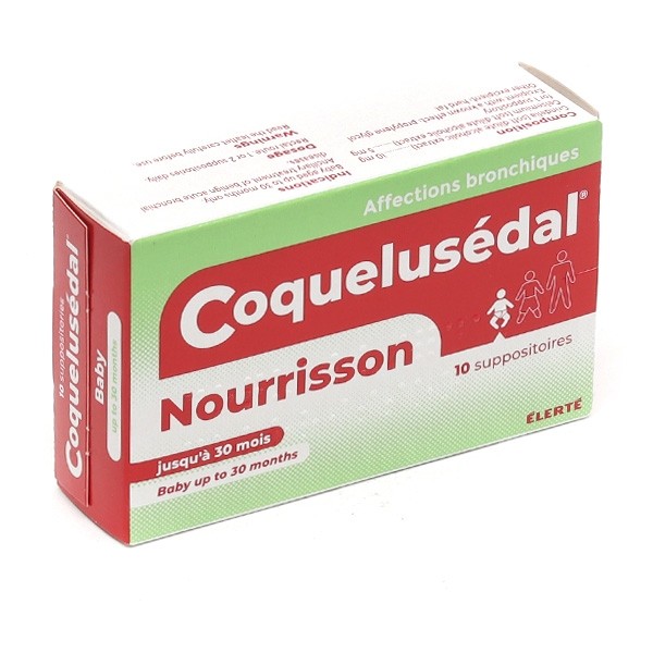 Coquelusedal Nourrisson est un médicament indiqué dans le traitement des affections bronchiques aiguës, bénignes, chez le nourrisson, jusqu'à 30 mois. Donner 1 à 2 suppositoires par jour. La durée du traitement devra être la plus courte possible sans dépasser 5 jours.