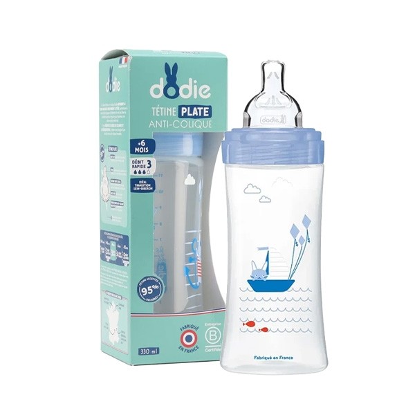 Le biberon à tétine plate anti colique Dodie est destiné aux nourrissons à partir de 6 mois. En effet, à mesure que bébé grandit, ses besoins et son appétit évoluent. Le biberon Dodie à tétine plate débit rapide est adapté au rythme de succion des bébés de 6 mois et plus, à la consistance de leurs repas et collations, ainsi qu’à leur appétit.