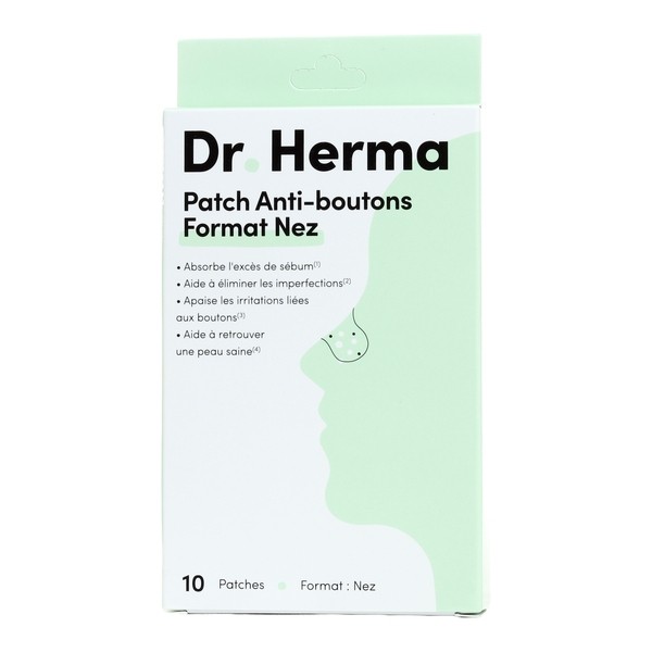 Le Patch anti-boutons nez Dr Herma se présente sous la forme d’un pansement de forme anatomique, sans compresse, spécialement conçu pour tenir parfaitement sur le nez et épouser idéalement ses formes. Large, il permet de se débarrasser facilement non pas d'un bouton, mais de l'ensemble des impuretés sources de pores dilatés, d'imperfections, de boutons, de points noirs et de brillances. Ultra fin et transparent, il se fond sur la peau pour masquer les imperfections tout en agissant en profondeur. Ce patch joue aussi un rôle anti-grattage, limitant la manipulation et le risque connexe de contamination et de cicatrices post-inflammatoires.