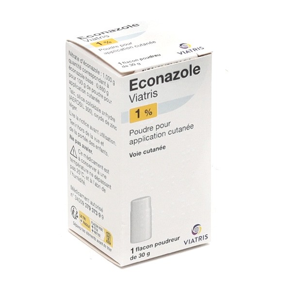 Econazole Viatris en poudre par exemple : 1 fois par jour dans les chaussures ou encore de sprays anti-transpirants.