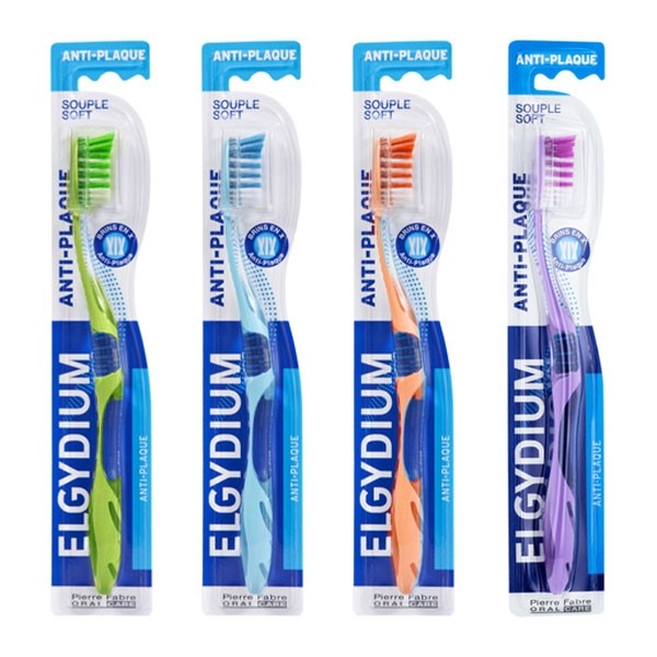 La brosse à dents anti-plaque Elgydium est souple et permet de retirer plus de plaque dentaire qu’une simple brosse à dents. Ses brins en X sont finement arrondis ce qui permet un brossage efficace tout en respectant les dents et les gencives protégées.