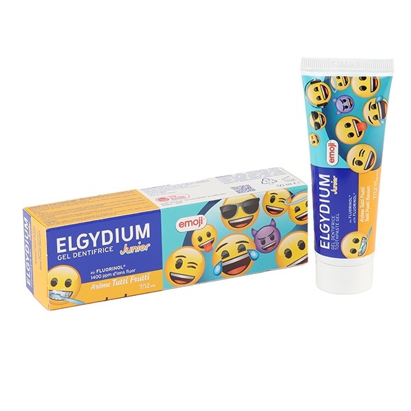 Le gel dentifrice Emoji Elgydium contribue de deux manières à maintenir cette discipline de brossage indispensable à tout âge et particulièrement chez les enfants de 7 à 12 ans. En effet, outre son arôme fruité très agréable, il arbore également un design ludique rassemblant plusieurs émoticônes, ou smileys, très populaires pour cette génération.