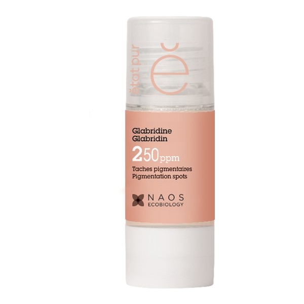 Etat Pur Glabridine 250 ppm est un soin élaboré pour agir sur les taches brunes. Il intègre de la glabridine, un puissant extrait de réglisse qui est reconnu pour estomper de manière significative les taches brunes. Celles-ci peuvent être causées par les expositions au soleil répétées, à des changements hormonaux, à un masque de grossesse, à une hyperpigmentation due à l'acné ou cicatricielle.
