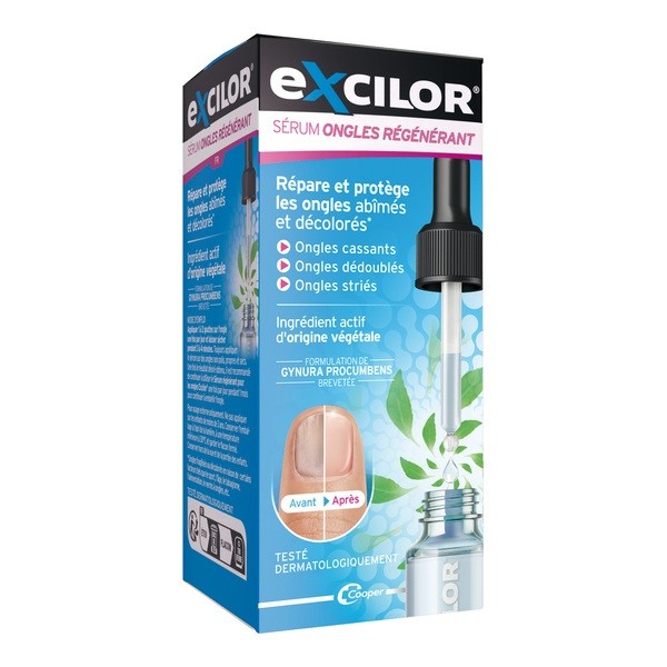 Le sérum ongles régénérant de la marque Excilor a été spécifiquement conçu pour redonner aux ongles abimés et décolorés leur aspect naturel et favoriser leur repousse, pour vous permettre d'avoir des ongles beaux, forts et en bonne santé. Du fait de sa texture huileuse, ce produit pénètre idéalement les phanères sans laisser pour autant de sensation grasse.