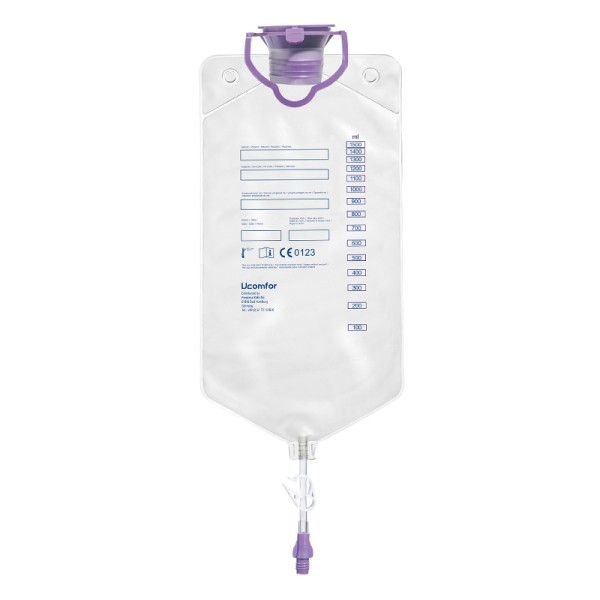 Dotée d'une capacité de 1500 ml, la poche à eau vide Hydrobag des Laboratoires Fresenius est graduée sur toute sa longueur, de 100 ml en 100 ml, afin de bien suivre le niveau d'hydratation du patient.