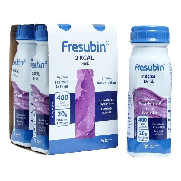 Fresubin 2 kcal Drink Fruits de la forêt est une denrée alimentaire destinée à des fins médicales spéciales. Cette boisson complète hypercalorique (2,0 kcal/ml) et hyperprotéinée (20 % AET) est destinée aux personnes dénutries ou à risque de dénutrition et plus spécifiquement aux personnes dont les besoins énergétiques et protéiques sont accrus en raison d'une maladie ou d'une fragilité importante.