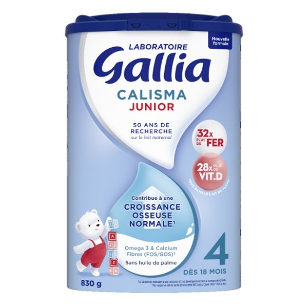 Gallia Calisma Junior est fourni dans une boite pratique à utiliser, pour plus de confort et de praticité au quotidien. Elle contient l'équivalent d'environ 25 biberons de 210 ml.Depuis plus de 50 ans, l'équipe des Laboratoires Gallia, constituée de scientifiques et de nutritionnistes travaille pour les bébés et de leurs parents, en mettant au point des formules infantiles dont l'inspiration provient des bénéfices que procure le lait maternel. Le Laboratoire Gallia propose aussi des laits bio, par exemple le lait de croissance Calisma Bio 3.