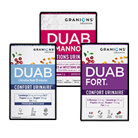 Duab Fort est un complément alimentaire doté d'une formule unique qui associe 5 ingrédients reconnus. Le D-Mannose est un dérivé du glucose, constituant naturel et physiologique de la vessie. Non assimilé par l'organisme, il est éliminé via les urines. Il empêche les bactéries d'adhérer à la paroi vésicale. Il a la capacité de bloquer l'
