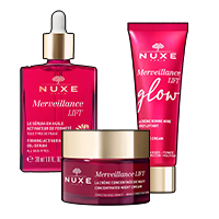 Merveillance lift Nuxe est la routine anti age rides et fermeté infusée d'huile de micro-algues ultra-corrective. Elle se compose de plusieurs produits visage vegans développés selon la charte NUXE diffusant un subtil parfum de freesia, magnolia et muscs blancs.