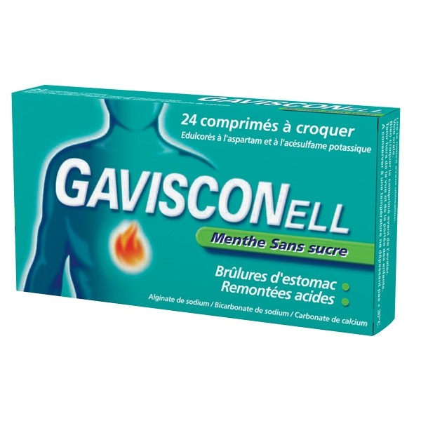 Gavisconell menthe sans sucre est un médicament sans ordonnance contre les brûlures d'estomac (pyrosis) le RGO (reflux gastro-œsophagien) et les régurgitations acides.