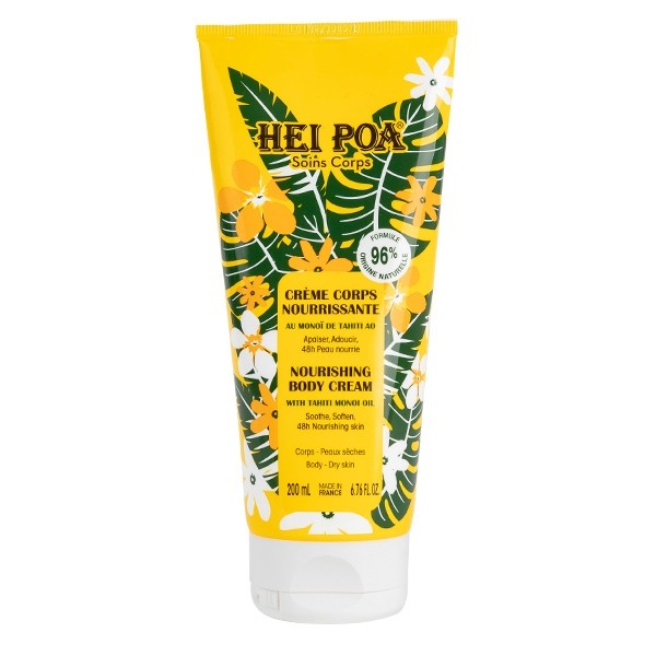 La crème corps nourrissante Hei Poa est riche en actifs hydratants et apaisants, qui la rendent idéale pour nourrir la peau. Elle contient de la glycérine qui a pour rôle d’humecter le derme en profondeur. Mais l’ingrédient clef de Hei Poa, c’est le monoï, un produit de beauté traditionnellement utilisé en Polynésie et obtenu à partir d’une macération élaboré à partir de la macération d’extraits de fleurs de tiaré dans de l’huile de coco. Riche en nutriments et acides gras, il vient nourrir le réseau cellulaire et stimuler la prolifération des tissus. Il consolide également la barrière lipidique et freine de cette manière la déshydratation.