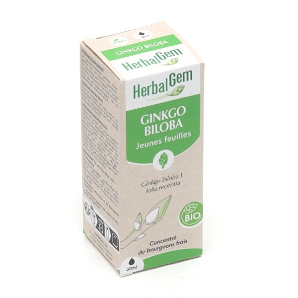 Le macérat des jeunes feuilles de Ginkgo biloba est riche en flavonoïdes. Ce n'est pas le bourgeon en tant que tel mais les jeunes feuilles qui contiennent des tissus embryonnaires qui sont employées. Le macérat d'Herbalgem a comme indication principale d’aider lors de troubles de la mémoire et de la concentration. On va pouvoir aussi utiliser ce macérat lors de problèmes de circulation veineuse. Herbalgem a développé une autre spécialité, Ginkgogem qui est un macérat de feuilles et de bourgeons.