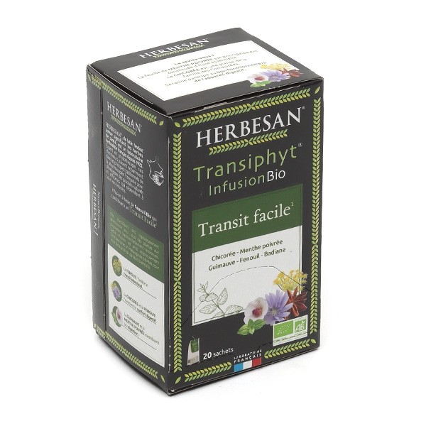 L'infusion Transiphyt Bio de Herbesan associe 5 plantes pour un meilleur transit intestinal. Elle permet également d'améliorer le confort digestif.