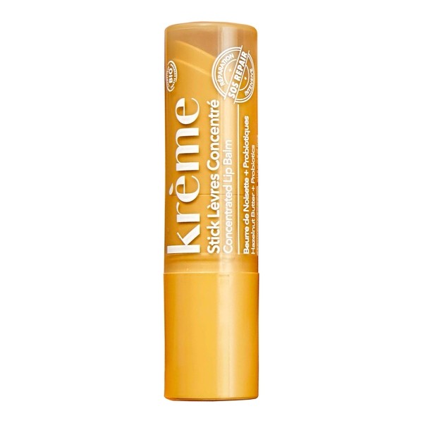 Très exposées, fines et mal protégées, les lèvres sont susceptibles de se dessécher, en particulier lorsque les conditions climatiques se durcissent. La conséquence, c'est l'apparition de gerçures. Il leur faut un produit adapté. C'est ce que propose Krème avec ce stick lèvres. Son efficacité repose sur deux actifs : le beurre de noisette et les probiotiques. Le beurre de noisette va nourrir les lèvres et renforcer la barrière cutanée, permettant aux lèvres de préserver leur hydratation. Il va aussi soulager les lèvres douloureuses. Les probiotiques vont agir sur le microbiome des lèvres, c'est-à-dire sur l'ensemble de micro-organismes que les lèvres hébergent naturellement. Ils vont avoir un effet rééquilibrant et offrir un apaisement durable. La formule est complétée par des huiles végétales nourrissantes.