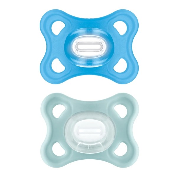 • MAM Comfort Sucette symétrique silicone 2-12 mois - Couleur : Bleu