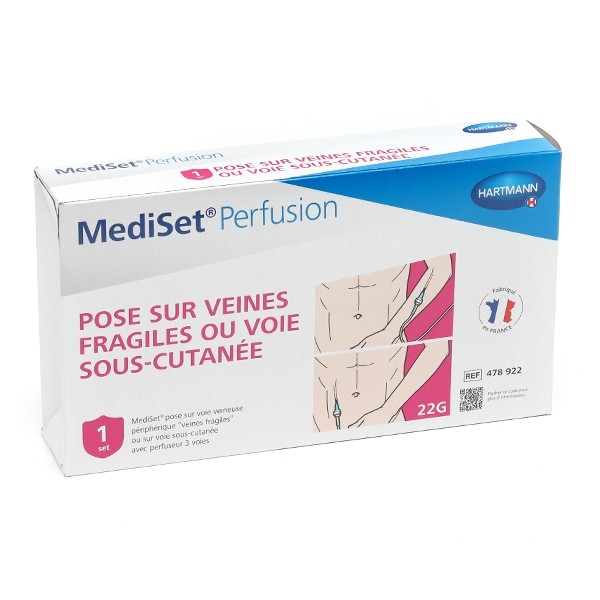 Le set de perfusion Mediset est destiné à la pose sur veines fragiles ou sur voie sous-cutanée. Ce dispositif est doté d’un robinet 3 voies qui permet de réaliser la pose d’une perfusion à domicile dans les conditions optimales de sécurité et d’asepsie prodiguées par un médecin ou un infirmier.