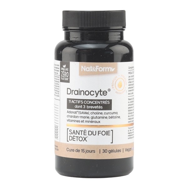 Drainocyte Nat et Form gélules est un complément alimentaire du laboratoire Nat et Form pour la santé du foie t la détox.