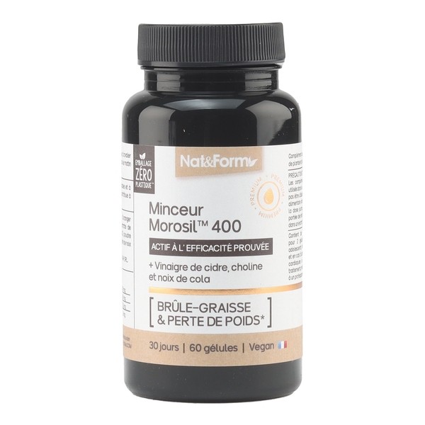 Nat et Form Minceur Morosil 400 gélules est un complément alimentaire du laboratoire Nat et Form à base de plantes et de choline destiné à l'effet brûle graisse et à la perte de poids.