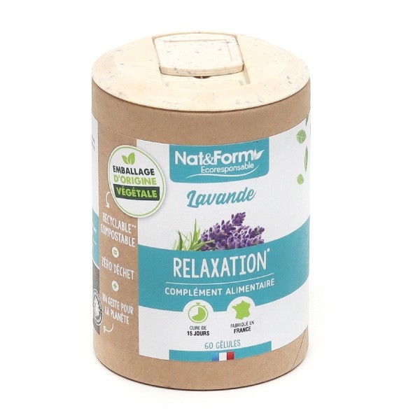Le complément alimentaire Nat & Form Ecoresponsable Lavande se présente sous la forme de gélules. Une boîte apporte 60 gélules, ce qui permet une cure de 15 jours. Les gélules contiennent de la poudre de fleurs de lavande.