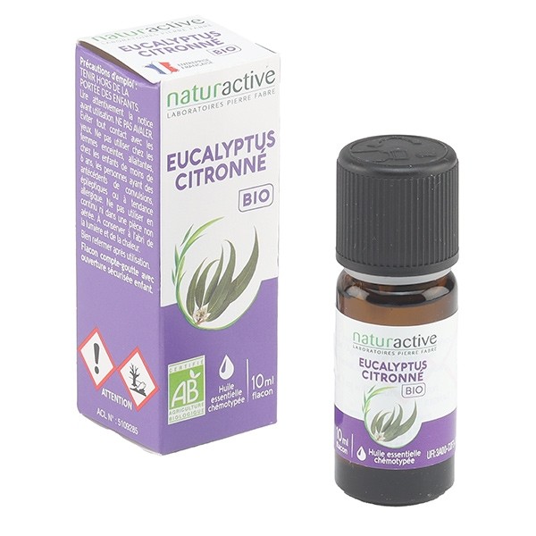 L’Huile essentielle Bio d'Eucalyptus citronné de la marque Naturactive est un produit naturel d'aromathérapie issu de l'agriculture biologique.