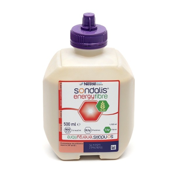 Nestlé Sondalis energy fibre est une denrée alimentaire destinée à des fins médicales spéciales. C'est une solution pour nutrition entérale. Elle est complète et peut constituer la seule source d'alimentation. Elle est hyperénergétique et normoprotéinée. Elle a pour particularité d'intégrer des fibres solubles et insolubles.