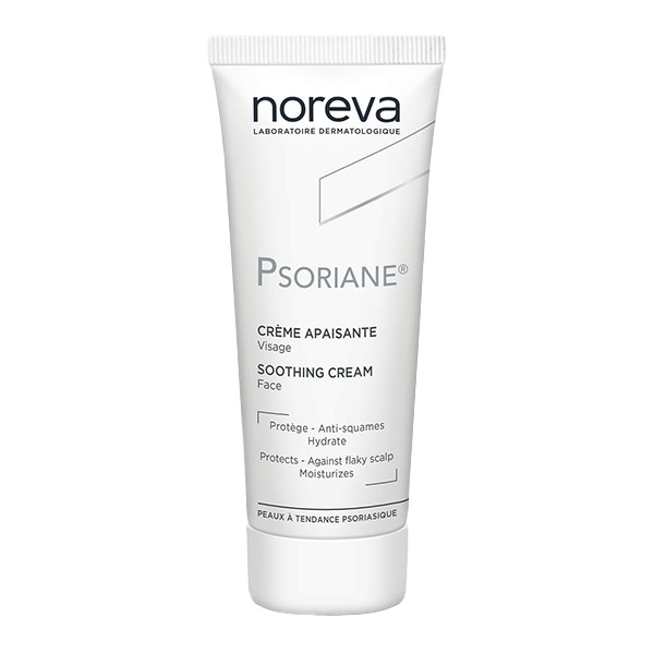 La crème apaisante visage Psoriane de la marque Noreva est un soin pour le visage destiné aux peaux sujettes au psoriasis. Elle peut être utilisée seule ou en accompagnement d'un traitement spécifique. Cette crème apaise, hydrate et lutte contre les squames et les irritations typiques de cette affection de la peau.
