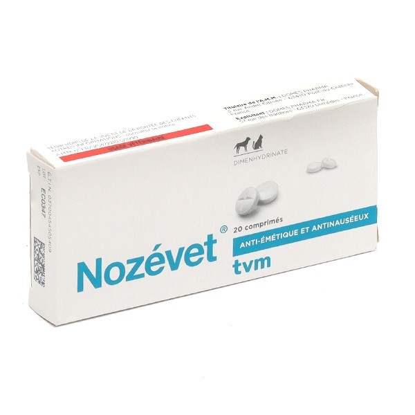Nozevet est un médicament qui a pour but de soulager les chiens et chats qui souffrent de mal des transports. C'est un anti nauséeux et un anti émétique. Il est à donner environ 30 mn avant le départ.