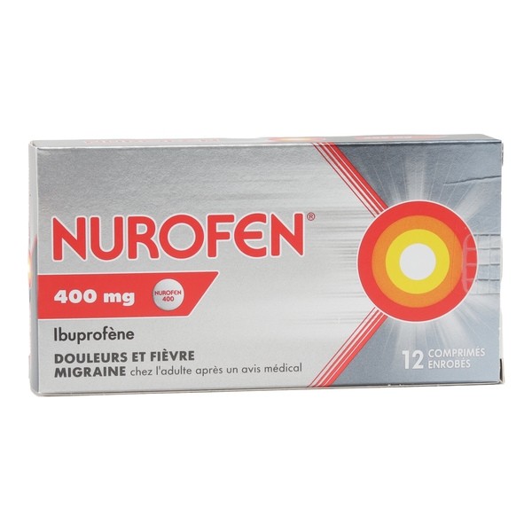 Nurofen 400 mg est un médicament anti inflammatoire formulé à partir d'ibuprofène. Il est indiqué sur une courte durée pour soulager la fièvre, les douleurs, les maux de tête et les états grippaux chez l'adulte et l'enfant de plus de 30 kilos.