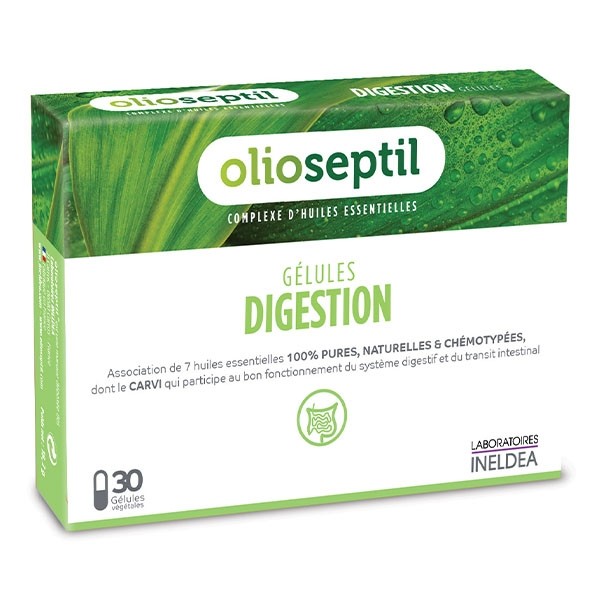 Olioseptil gélules digestion est un complément alimentaire à base d'huiles essentielles.