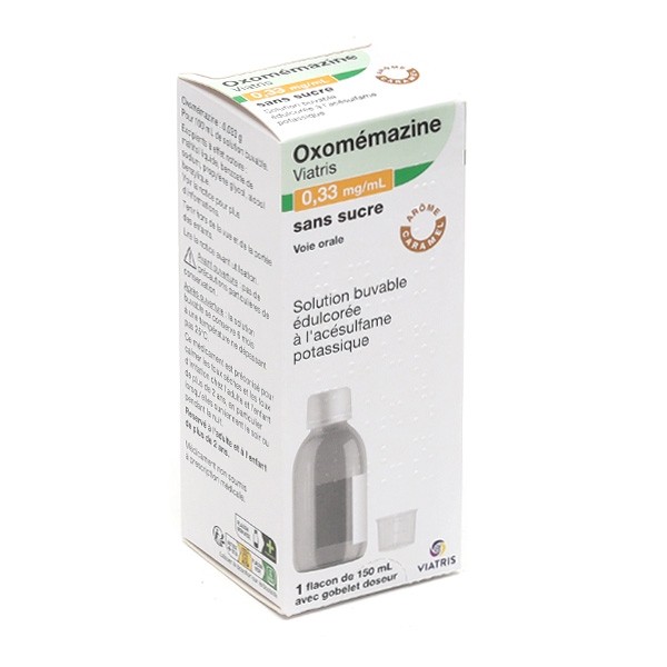 Le sirop Oxomémazine Viatris 0,33 mg / ml sans sucre, solution buvable édulcorée à l'acésulfame potassique est un médicament à base d'un antihistaminique, l'oxomémazine. Ce sirop est indiqué pour calmer les toux sèches ou les toux d'irritation chez l'adulte et l'enfant de plus de 2 ans, en particulier lorsqu'elles surviennent le soir ou pendant la nuit.