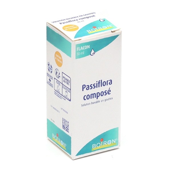 La solution buvable passiflora composé est un médicament homéopathique des Laboratoires Boiron. Il se présente sous la forme d'une solution buvable en gouttes. Sa formule comprend Coffea cruda 5 CH, Ignata amara 4 CH, Magnesium metallicum 5 CH,  Nycterinia capensis 4 CH, Palladium metallicum 5 CH, Passiflora incarnata 6 CH, Phosphoricum acidum 7 CH et  Tellurium metallicum 5CH. Elle a un excipient, l'alcool, à 30 % V/V.