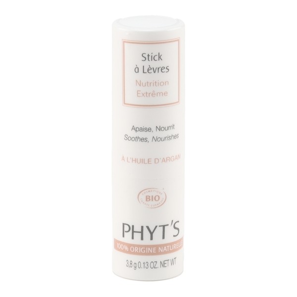 Phyt's a formulé son stick à lèvres Nutrition Extrême bio avec des cires qui vont élaborer à la surface des lèvres un film protecteur. Elle contient également du beurre de karité, un actif réputé pour ses propriétés régénérantes et nourrissantes. Elle apporte de la vitamine E naturelle qui va aider les lèvres à cicatriser. Elle va nourrir la peau des lèvres grâce à son mélange végétal d'acides gras, et elle apporte des huiles végétales adoucissantes.