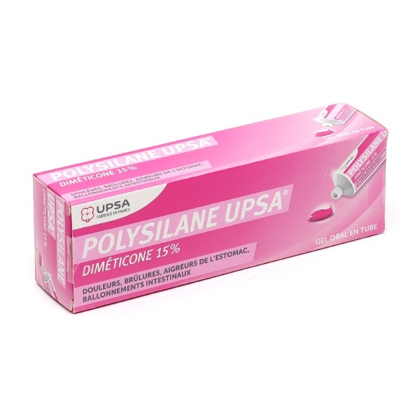 Polysilane UPSA est un médicament sous forme de gel oral, composé de diméticone. Il est réservé à l’adulte et indiqué dans le traitement des douleurs, aigreurs et brûlures d’estomac. Polysilane UPSA peut aussi être employé en cas de ballonnements intestinaux.