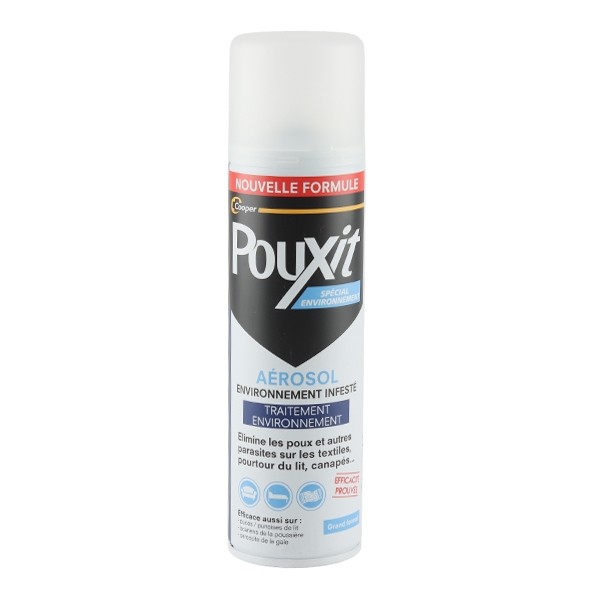 Pouxit propose l'aérosol Spécial environnement, qui est justement destiné à traiter l'environnement infesté par des poux. Il est aussi efficace contre les punaises de lit.