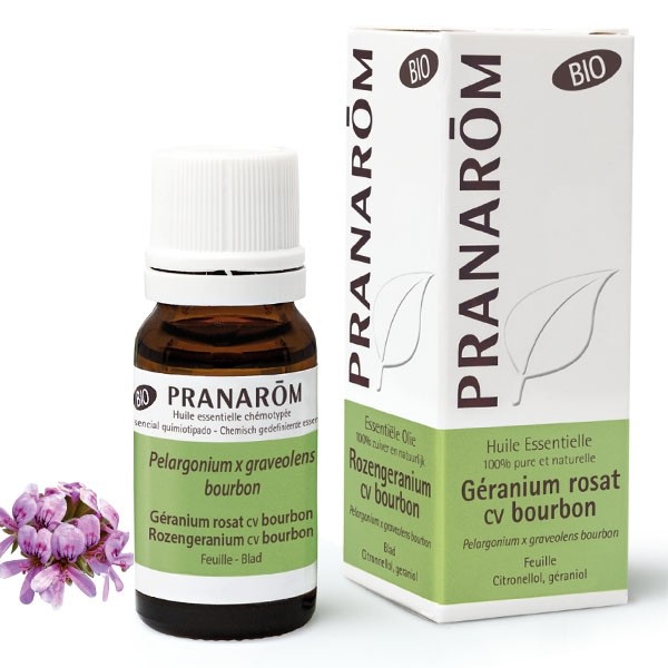 Pranarom Géranium rosat cv bourbon est une huile essentielle bio 100% pure et naturelle et un complément alimentaire.