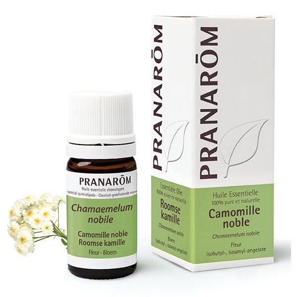 L'huile essentielle de Camomille Noble des laboratoires Pranarom est obtenue par distillation à la vapeur des fleurs de Chamaemelum nobile. La camomille noble, plus souvent appelée Camomille romaine, ne doit pas être confondue avec la Camomille allemande ou Matricaire. Les tiges de Camomille romaine comportent de petits poils ainsi que le dessous de ses feuilles ce qui leur donne un aspect blanchâtre. Ses fleurs sont petites et blanches avec un coeur jaune, leur odeur est caractéristique. Les Grecs trouvaient qu'elle ressemblait à l'odeur de pomme c'est pourquoi ils l'appelèrent khamaimelon = pomme de sol qui en latin deviendra Chamaemelum : la camomille.