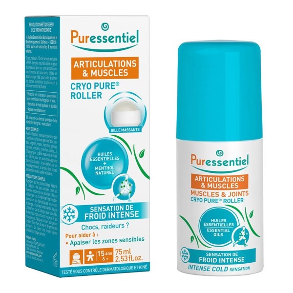 Cryo Pure Roller Articulations et muscles est un complexe aromathérapique élaboré par la marque Puressentiel et recommandé pour apaiser naturellement les articulations et les muscles sensibilisés suite à une activité sportive, une mauvaise posture par exemple ou encore raideur. Cryo Pure Roller fonctionne selon le principe de la cryothérapie : il procure un effet froid intense qui entraîne la vasoconstriction et aide à réduire la douleur.